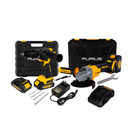 COMBO ESMERILADORA ANGULAR INALAMBRICA SIN ESCOBILLAS + TALADRO PERCUTOR INALAMBRICO SIN ESCOBILLAS