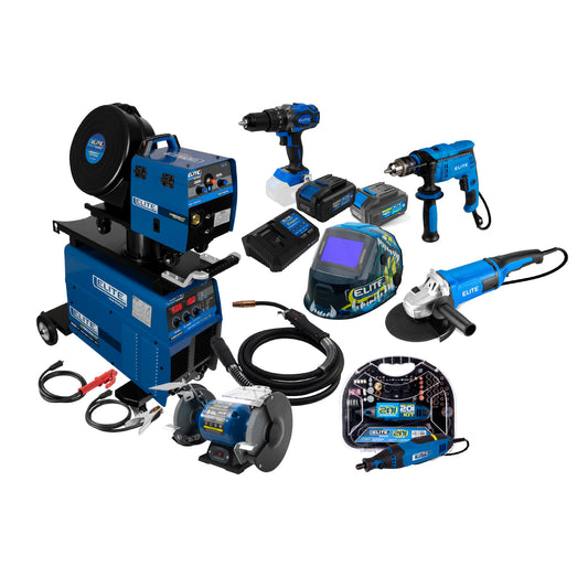 COMBO SOLDADOR + ANTORCHA + CARETA + ESMERILADORA + 2 CARGADORES + 3 BATERIAS + TALADRO PERCUTOR + ESMERIL + MOTO TOOL