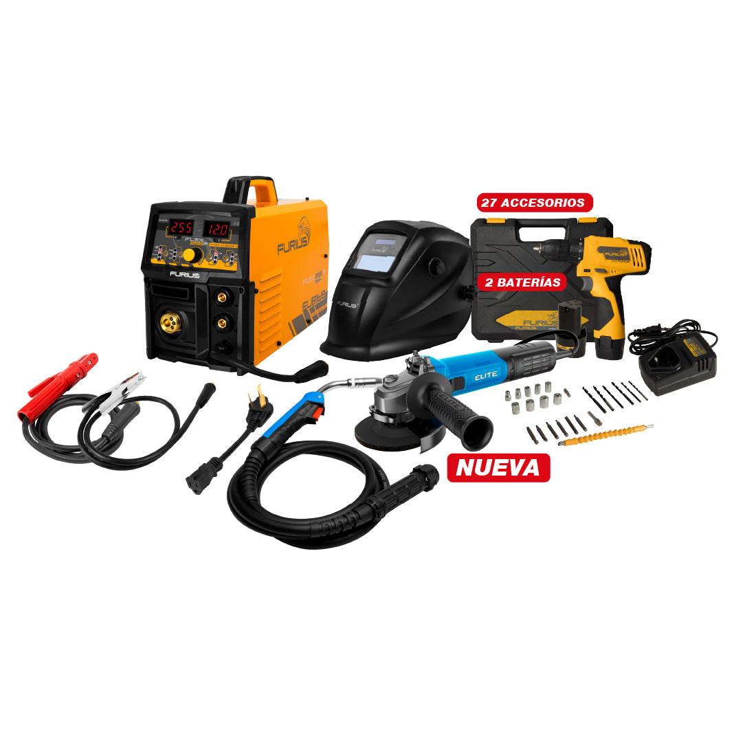 COMBO SOLDADOR INVERSOR MULTIPROCESOS + CARETA FOTOSENSIBLE + TALADRO ATORNILLADOR INALAMBRICO + ESMERILADORA ANGULAR 4 1/2